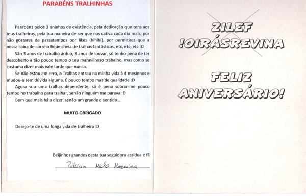 Wee mais cartinhas da tralheirada! Então, estas ainda no âmbito do aniversário do tralhas!