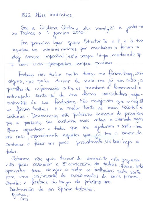 Carta da Cristina Caetano (wendy21 no Forum)