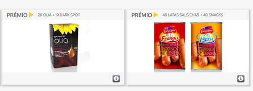 Hoje está um video que oferece por exemplo 40 latas salsichas + 40 Snacks da Campofrio, e ainda 10 packs de 4 Mini Snack Sabor do Ano. Depois tem uns da Garnier, Chilli Beans (oferece 5 pares de óculos).