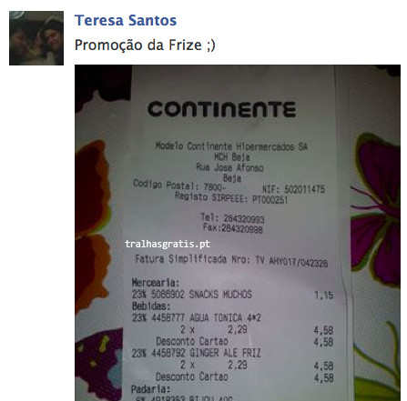 . 50% em Ginger Ale e Água Tónica, Frize